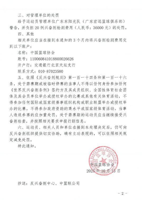 雷速體育10月13日訊 根據(jù)中國籃協(xié)官方的公示,對于上個賽季效力廣東隊大外援吉倫沃特興奮劑違規(guī)處理結(jié)果正式公示。