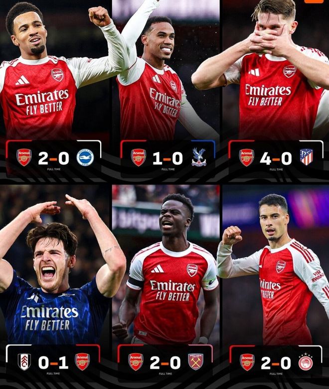這場勝利為阿森納完美的十月表現(xiàn)畫上了圓滿的句號。數(shù)據(jù)統(tǒng)計顯示,阿森納創(chuàng)造了一項英格蘭頂級聯(lián)賽的,他們是英格蘭頂級聯(lián)賽歷史首支能夠在一個月內(nèi)取得6戰(zhàn)全勝且0丟球的球隊。在剛剛過去的十月份,展現(xiàn)了令人嘆為觀止的攻防統(tǒng)治力。6戰(zhàn)全勝包括英超、歐冠和聯(lián)賽杯,進12球0失球。這一驚人的“6戰(zhàn)全勝+0丟球”數(shù)據(jù),使阿森納超越了所有歷史上的英格蘭頂級聯(lián)賽球隊,成為了新的歷史紀錄保持者。